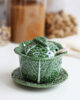 Este azucarero forma de col es parte de un tipo de cerámica tradicional del centro de Portugal. Frutas, hortalizas y hojas son uno de los temas principales de la tradición lusa a la hora de montar una mesa. Está fabricada de manera artesanal y esmaltada a mano. Aunque el proceso de fabricación sea tradicional está adaptado para el uso diario.