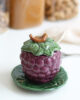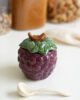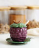 Este azucarero con forma de de uva es parte de un tipo de cerámica tradicional del centro de Portugal. Frutas, hortalizas y hojas son uno de los temas principales de la tradición lusa a la hora de montar una mesa. Está fabricada de manera artesanal y esmaltada a mano. Aunque el proceso de fabricación sea tradicional está adaptado para el uso diario.