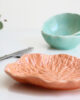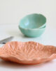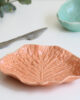 Este bandeja forma parte de un tipo de cerámica tradicional del centro de Portugal. Frutas, hortalizas y hojas son uno de los temas principales de la tradición lusa a la hora de montar una mesa. Está fabricada de manera artesanal y esmaltada en color amarillo claro. Aunque el proceso de fabricación sea tradicional está adaptado para el uso diario.