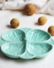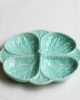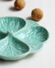 Esta bandeja para aperitivos forma parte de un tipo de cerámica tradicional del centro de Portugal. Frutas, hortalizas y hojas son uno de los temas principales de la tradición lusa a la hora de montar una mesa. Está fabricada de manera artesanal y esmaltada en color mint. Aunque el proceso de fabricación sea tradicional está adaptado para el uso diario.