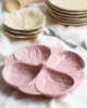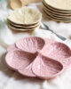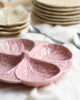 Este bandeja para aperitivos forma parte de un tipo de cerámica tradicional del centro de Portugal. Frutas, hortalizas y hojas son uno de los temas principales de la tradición lusa a la hora de montar una mesa. Está fabricada de manera artesanal y esmaltada en color rosa. Aunque el proceso de fabricación sea tradicional está adaptado para el uso diario.