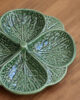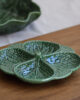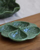 Este bandeja para aperitivos forma parte de un tipo de cerámica tradicional del centro de Portugal. Frutas, hortalizas y hojas son uno de los temas principales de la tradición lusa a la hora de montar una mesa. Está fabricada de manera artesanal y esmaltada en color verde. Aunque el proceso de fabricación sea tradicional está adaptado para el uso diario.