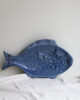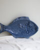 Bandeja con forma de pez, fabricado y esmaltado a mano en Portugal. Este tipo de vajilla con formas es ya un símbolo tradicional del país luso y el tema marítimo está muy presente en sus mesas. Aunque está elaborada de forma artesanal, se trata de un producto adaptado y fabricado para el uso diario.