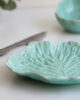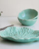 Este bandeja forma parte de un tipo de cerámica tradicional del centro de Portugal. Frutas, hortalizas y hojas son uno de los temas principales de la tradición lusa a la hora de montar una mesa. Está fabricada de manera artesanal y esmaltada en color turquesa. Aunque el proceso de fabricación sea tradicional está adaptado para el uso diario.