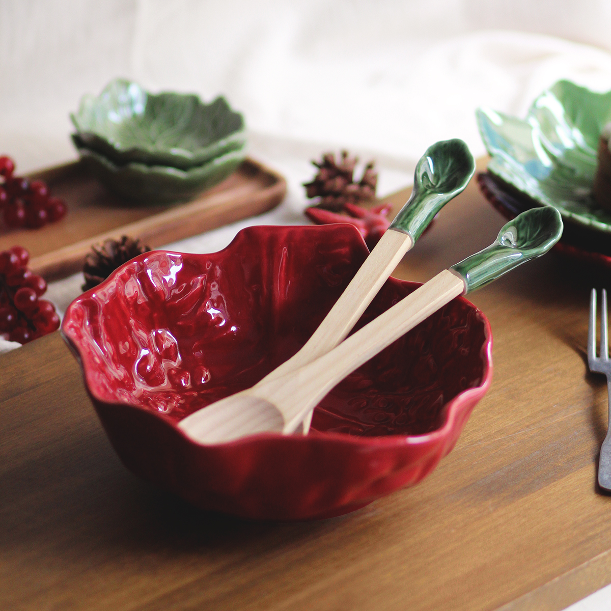 Esta ensaladera forma parte de un tipo de cerámica tradicional del centro de Portugal. Frutas, hortalizas y hojas son uno de los temas principales de la tradición lusa a la hora de montar una mesa. Está fabricada de manera artesanal y esmaltada a mano. Aunque el proceso de fabricación sea tradicional está adaptado para el uso diario.