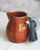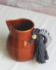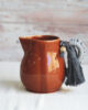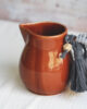 Jarra o florero? eso depende de ti. Esta jarra con tintes campestres y tradicionales simula las antiguas jarras de barro. Fabricada en gres y esmaltada a mano con tintes de alta calidad, esta jarra es una joyita no sólo por su calidad sino por su aspecto y su asa enfundada con algodón e hilo a base crochet que le da ese aspecto romántico tan ideal.