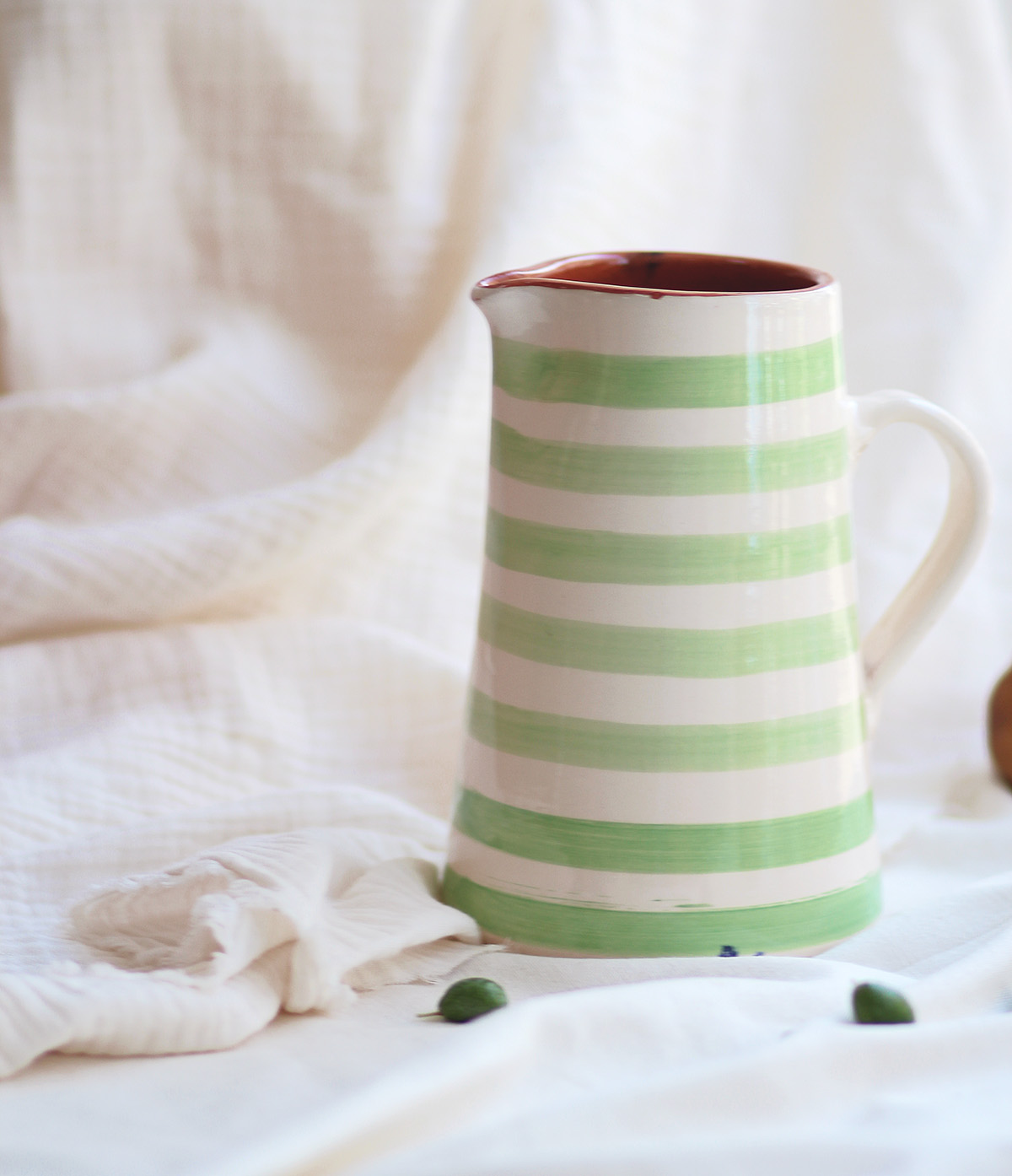 Hechas a mano, estas jarras guardan el encanto de lo auténtico y la calma de lo sencillo. Cada una nace despacio, entre barro, pincel y tradición, con el alma del sur en cada trazo.