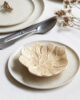 Este platito de pan forma parte de un tipo de cerámica tradicional del centro de Portugal. Frutas, hortalizas y hojas son uno de los temas principales de la tradición lusa a la hora de montar una mesa. Está fabricado de manera artesanal y esmaltado a mano en color crema. Aunque el proceso de fabricación sea tradicional está adaptado para el uso diario.
