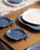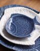 Platito de pan de cerámica, fabricado y esmaltado a mano en Portugal. Este tipo de vajilla con formas es ya un símbolo tradicional del país luso y el tema marítimo está muy presente en sus mesas. Aunque está elaborada de forma artesanal, se trata de un producto adaptado y fabricado para el uso diario.