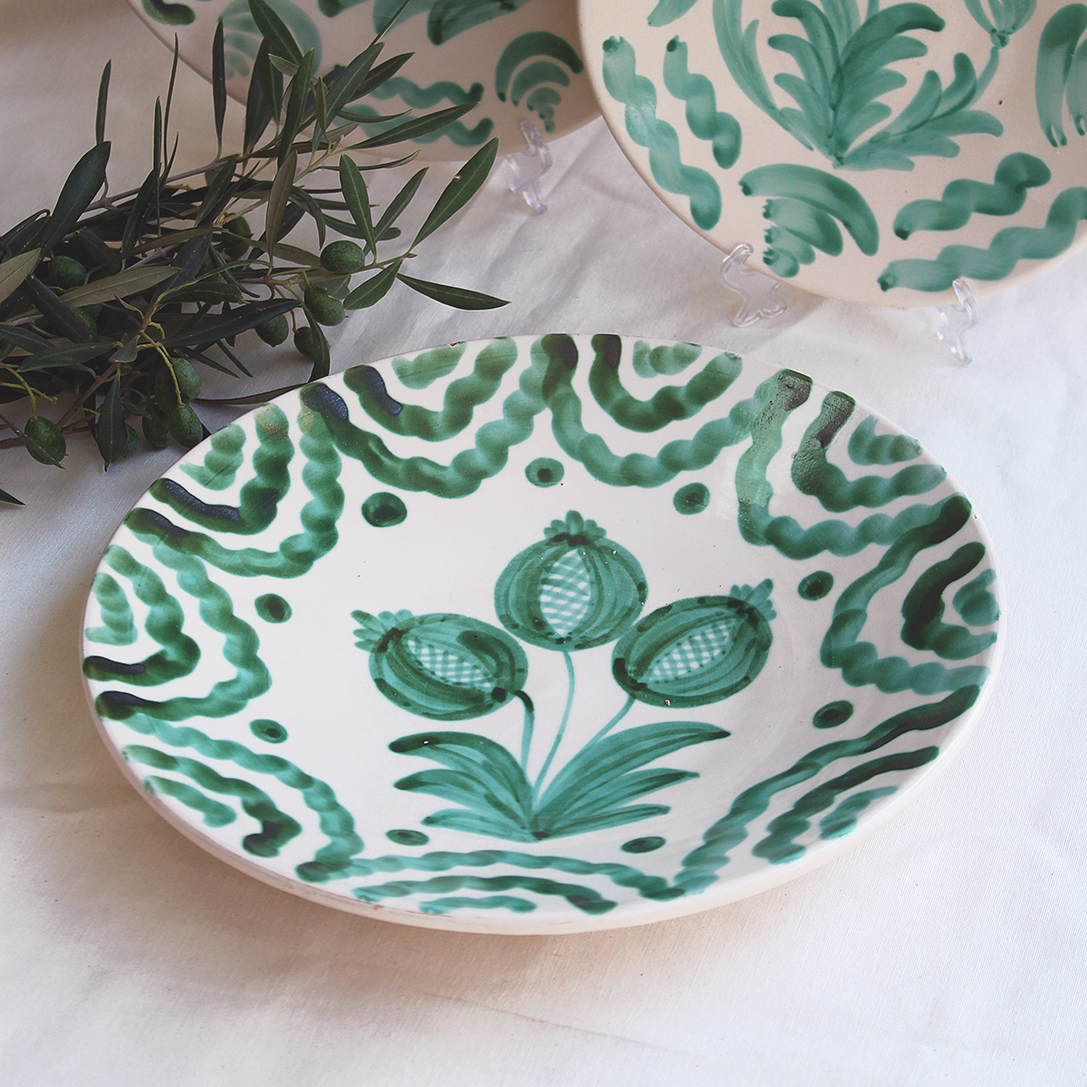 Además estos platos están preparados para colgarse fácilmente, convirtiéndose así también en un detalle decorativo lleno de calidez y autenticidad. Pueden adornar una pared o formar parte de una composición que evoque el alma mediterránea y el gusto por lo hecho con mimo.