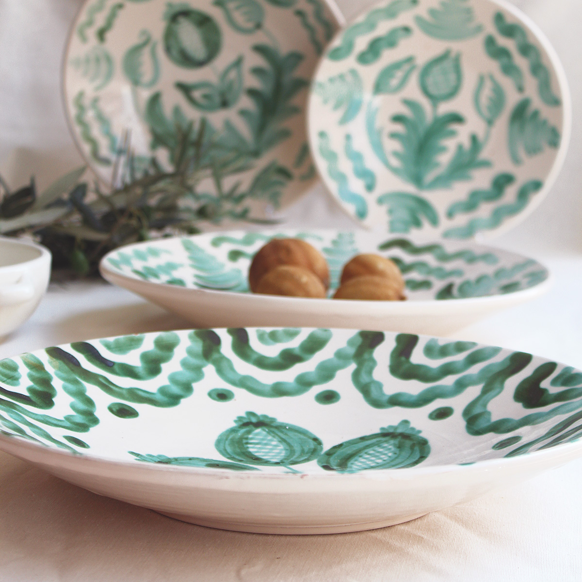 Cada pieza es moldeada y esmaltado a mano, con ligeras variaciones que hacen que no haya dos iguales. Su acabado combina lo tradicional con un aire contemporáneo que las convierte en piezas versátiles: perfectas para usar en la mesa o para decorar.