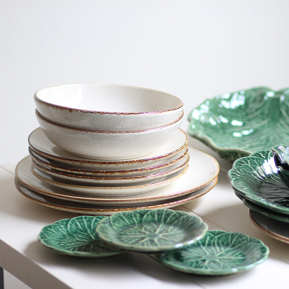 Si eres de los que disfrutas vistiendo tu mesa, la vajilla Tavira es una buena opción, su aspecto vintage y sus colores la convierten en una vajilla llena de posibilidades y es que es combinable con multitud de colores y piezas de diferentes estilos. Su aspecto bohemio esconde un proceso de fabricación artesanal que la dotan, aún más ,si cabe, de ser una opción perfecta para tu mesa.